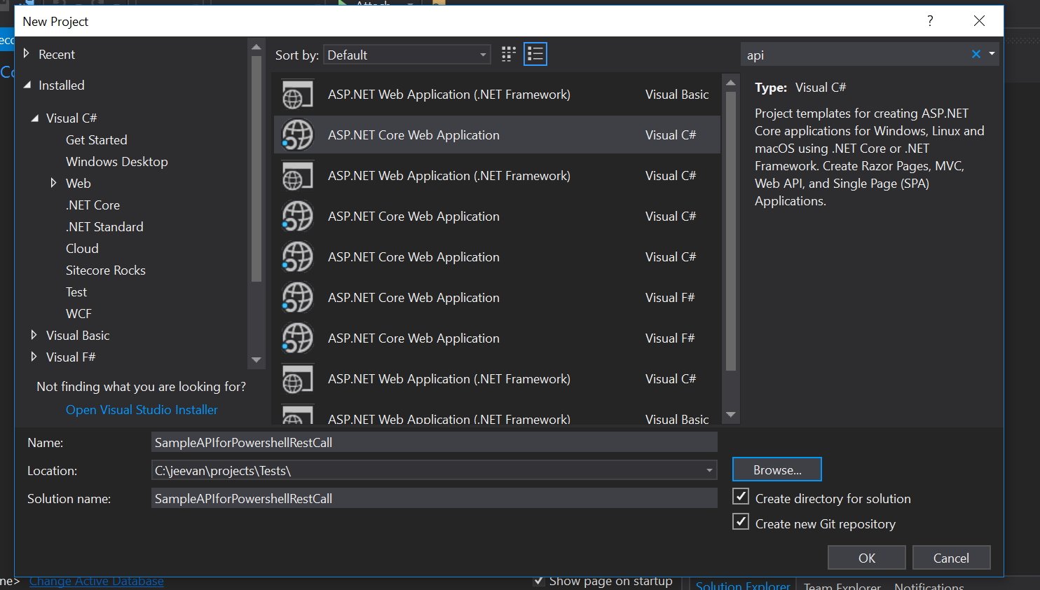 Create ASP.NET Core Web Application