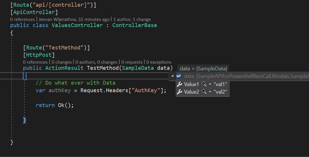 var authKey = Request.Headers[“AuthKey”];return Ok();